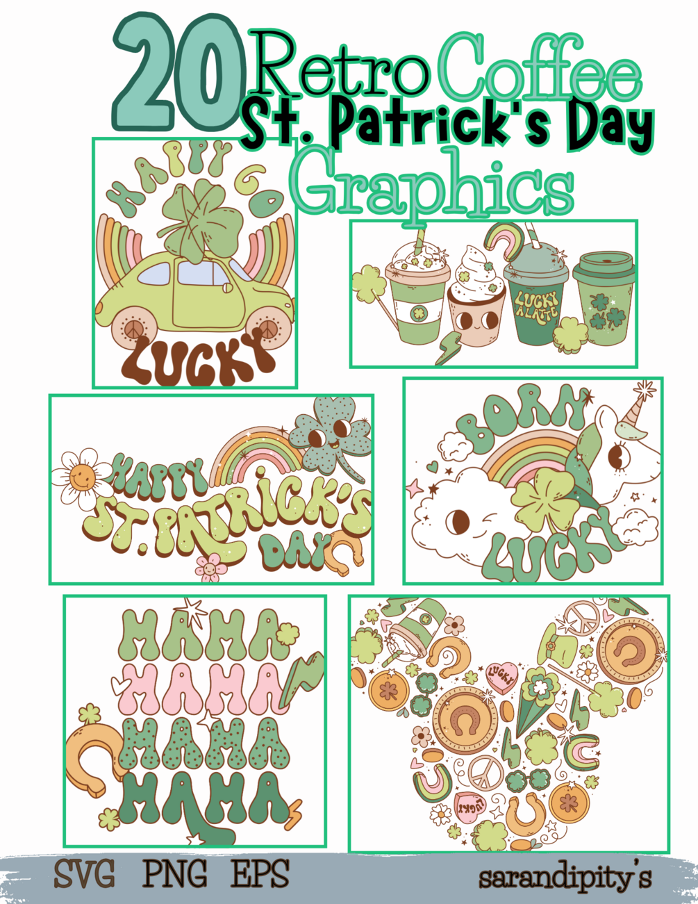 If you're a creative soul, you’ll love our 20-image Retro St. Patrick’s Day Coffee Graphics Pack! 🍀✨ Perfect for crafting, printing, and designing, this set includes SVG, PNG, and EPS formats – ready for all your DIY and business needs!