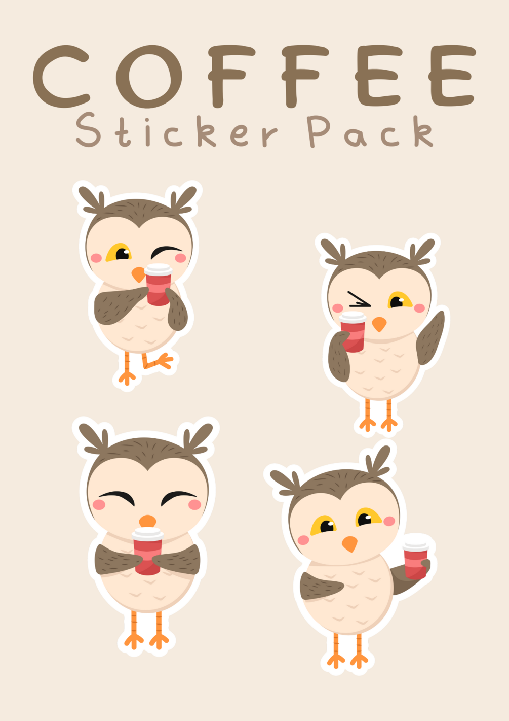 Owl Coffee Sticker Set